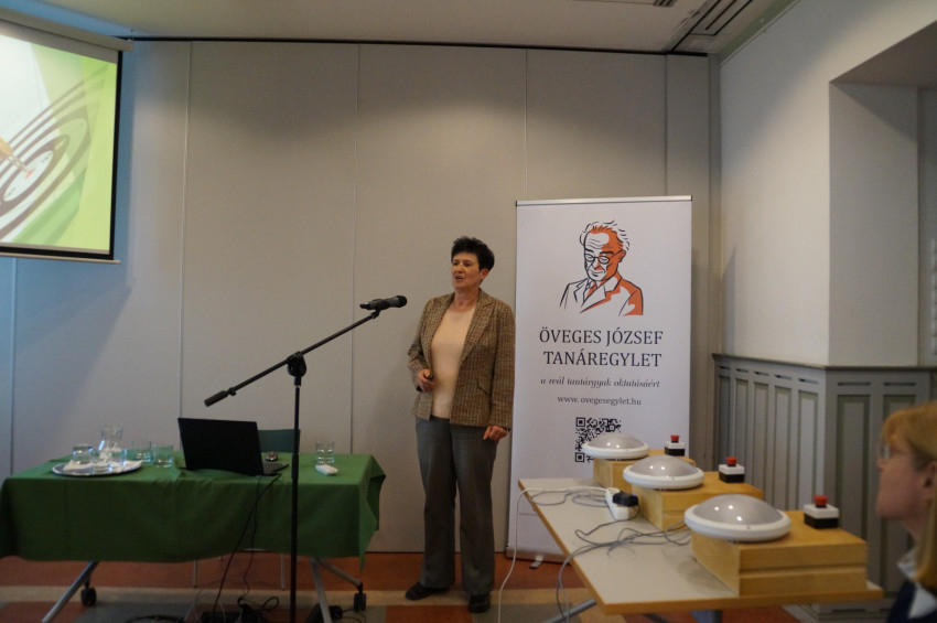Szekér Borbála, az egyesület elnökhelyettese A 130 éve született Öveges József professzor üzenete című előadásában történelmi és pedagógiatörténeti folyamatban helyezte el és idézte fel Öveges professzor személyét.