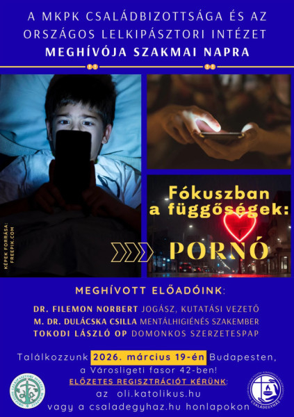 A függőségek témájával foglalkozó sorozat március 19-i alkalma nemcsak a helyzet leírását, hanem a megelőzési és gyógyítási lehetőségeket is középpontba állítja. Izgalmas előadások hangzanak el, amelyek lelki iránytűként is szolgálhatnak, hogy nagyobb távlatokba, Isten fényébe helyezzük a kor kihívásait.