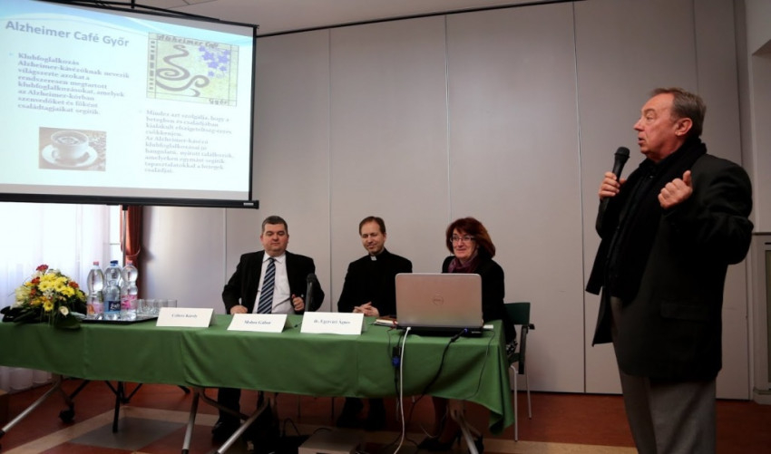 Menyhárt Miklós főorvos, egészségügyi szakmenedzser egy olyan kezdeményezésről beszélt, amelyet Franciaországban szerzett szakmai tapasztalatai alapján hozott létre Győrben, Alzheimer Café néven. A havi egy alkalommal megrendezett klubfoglalkozás célja a felvilágosítás, a tabuk feloldása. Franciaországban politikai prioritása van a demenciának, amelyet – mivel nemcsak a beteget, hanem egész családját és az egész társadalmat érintő probléma – össztársadalmi kérdésnek tekintenek.
