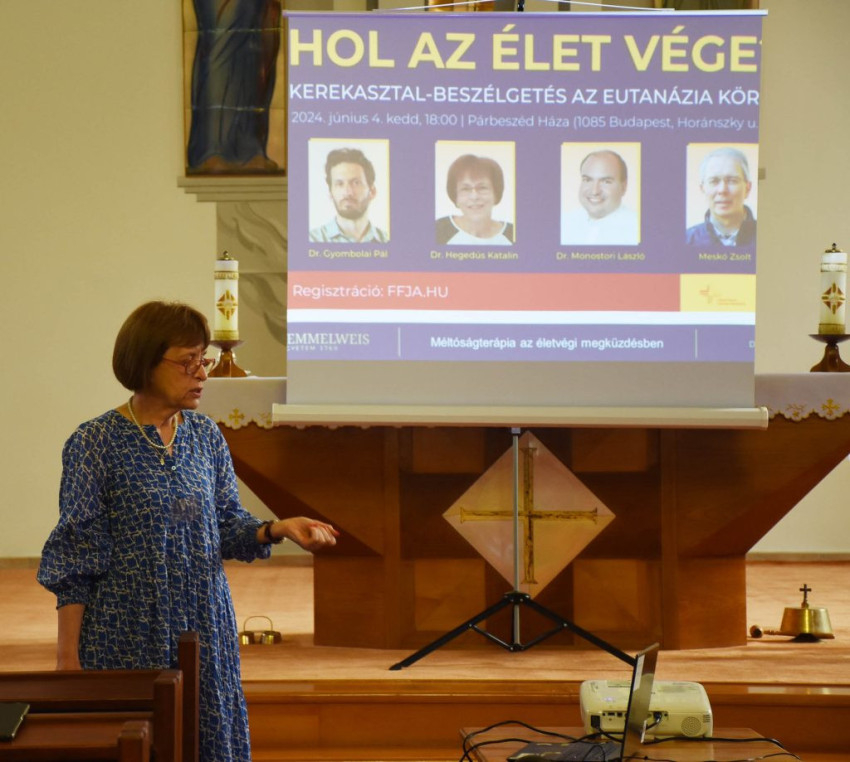 Hegedűs Katalin, a Semmelweis Egyetem Magatartástudományi Intézet Tanatológia kutatócsoportjának vezetője Méltóságterápia az életvégi megküzdésben címmel tartott előadást.