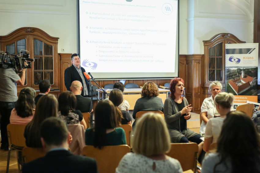 A központ piarista szemléletét Guba András SP intézményvezető ismertette. A piaristák minden időben segítették a szegényeket, bármiben is szenvedjen valaki hiányt. Értelemszerű tehát, hogy a fogyatékkal élők felé is odafordultak. Pivár Ignác piarista szerzetes 1883-ban kapott megbízást arra, hogy egy siketekkel foglalkozó intézményben legyen hittanár. Ugyanabban, mint amit ma Mikesy György vezet. A Kilátó Központban megforduló fiatal felé azt szeretnék közvetíteni, hogy ő is fontos, hogy Isten az ő számára is kijelölt valami feladatot. Azt kell megtapasztalnia, hogy „van embere”, van, aki odaáll mellé. „Szándékunk az is, hogy felvillantsuk számukra a spirituális dimenziót, és rámutassunk arra, hogy Isten rájuk is figyel. Emellett szeretnénk utat mutatni az Egyház felé is.”
