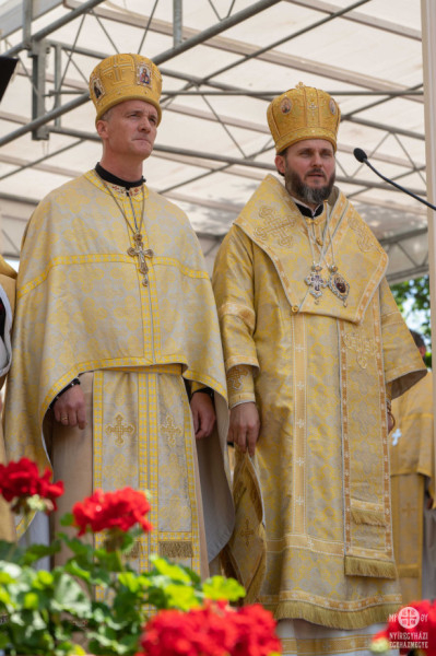 Az ünnepi Szent Liturgián az egyházmegye csaknem minden áldozópapja részt vett, arany-fehér liturgikus öltözékükben állták-ülték körül a templom előtt felállított szabadtéri oltárt, ahol Szocska A. Ábel megyéspüspök együtt celebrálta a liturgiát Michael Wallace Banach püspökkel, Magyarország apostoli nunciusával.
