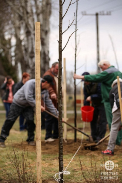 A templom udvarán már elültettek egy fát: egy wadowicei tölgyet 2014-ben a templom szentelése után, hiszen az oltárban Szent II. János Pál pápa ereklyéi vannak elhelyezve. „Most a tíz hársfa az itt gyökeret eresztett és szárba szökkent egyházközséget jelképezi. S reméljük, majd jó illatot fognak árasztani a levendulákkal az Isten jóindulatának és jó illatának tanúságára” – mondta az egyházközség első parókusa. Szabó Tamás azt is elárulta az egyházmegyei lap munkatársának, hogy idén újabb építkezések kezdődnek: most a templom mögötti telken, ahol egy sport- és közösségi célokat szolgáló szabadidőpark, a Görögtűz Park fog létesülni.