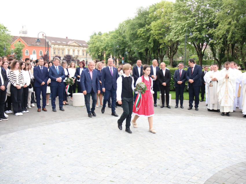 A szentmise végén megkoszorúzták a székesegyház előtti Hám János-szobrot.