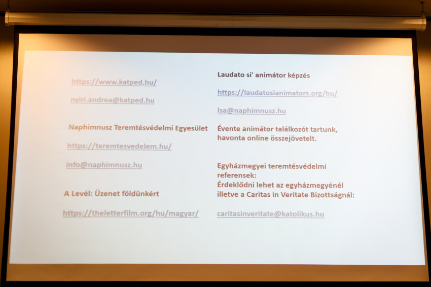 Előadásuk végén olyan linkeket ajánlottak, melyek segítséget nyújtanak a pedagógusoknak a teremtésvédelem témájában való elmélyüléshez.