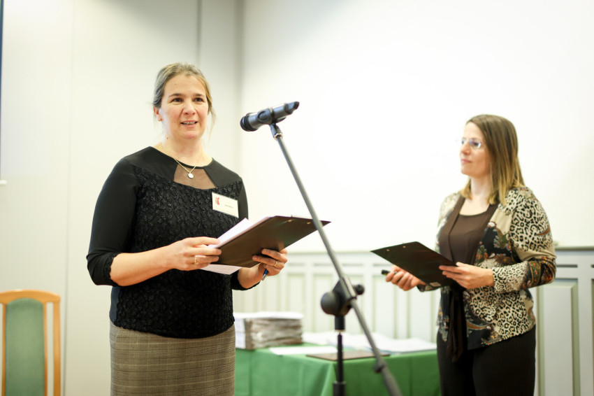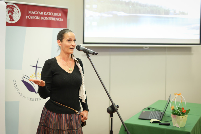 Ebéd után Bánlaki Zsanett, az MKPK Caritas in Veritate Bizottság irodavezetője és Nyiri Andrea, a Katolikus Pedagógiai Intézet teremtésvédelmi munkacsoportjának szakmai vezetője mutatta be a Teremtésvédő Óvoda, Iskola és Kollégium címet.