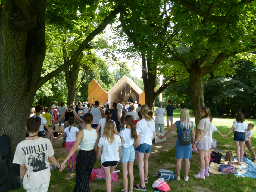 A szerdai napon a Normafához kirándultunk, ahol a cél a Szent Anna-réti Boldogságos Szűz Mária Világ Győzelmes Királynéja engesztelő kápolna volt, amelyet 2023. december 8-án szentelt fel Erdő Péter bíboros. Ezen a napon csatlakoztak hozzánk a budapest-újpest-kertvárosi Szent István-plébánia hittanosai is, így több mint száz gyerek vett részt a szentmisén, amelybe néhány arra járó is bekapcsolódott.