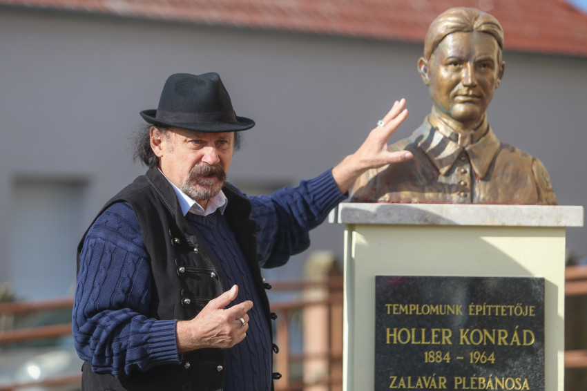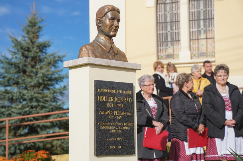 „Összefogás, kitartó munka és tenni akarás. Ezzel a három kifejezéssel jellemezném a templom építésének sikerességét. Ki volt ennek a motorja? Holler Konrád, Zalavár akkori plébánosa” – fogalmazott a polgármester. Ismertette: Holler Konrád, aki 1919 és 1929 között szolgált Zalaváron, felépíttette a helyi templomot, rendbe tetette a temetőt, felújíttatta az elemi iskolát, énekkart hozott létre, ismeretterjesztő előadásokat tartott, és küzdött az orgona megvásárlásáért. „Az évforduló alkalmából méltóképpen szeretnénk megemlékezni templomunkról és építőjéről, Holler Konrád plébánosról, akinek tiszteletére szobrot állítottunk, mely Turi Török Tibor szobrászművész alkotása” – mondta el a település vezetője.