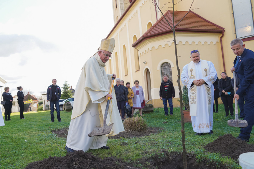 A szentmise záróáldását követően a hívek a templomkertbe vonultak, ahol – mint száz évvel ezelőtt eleik – hársfát ültettek a jeles alkalomból.