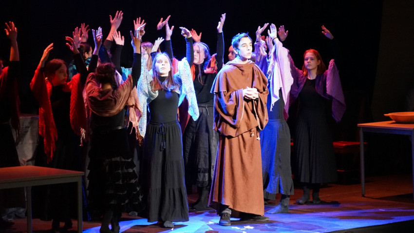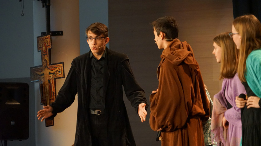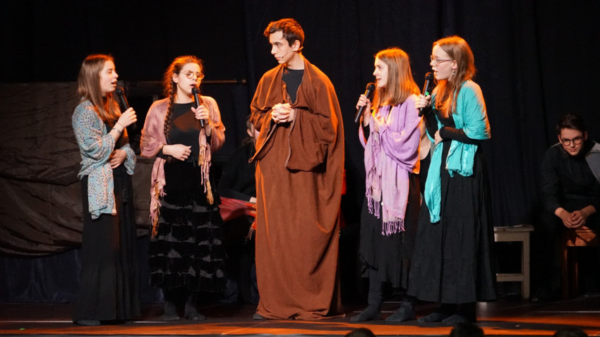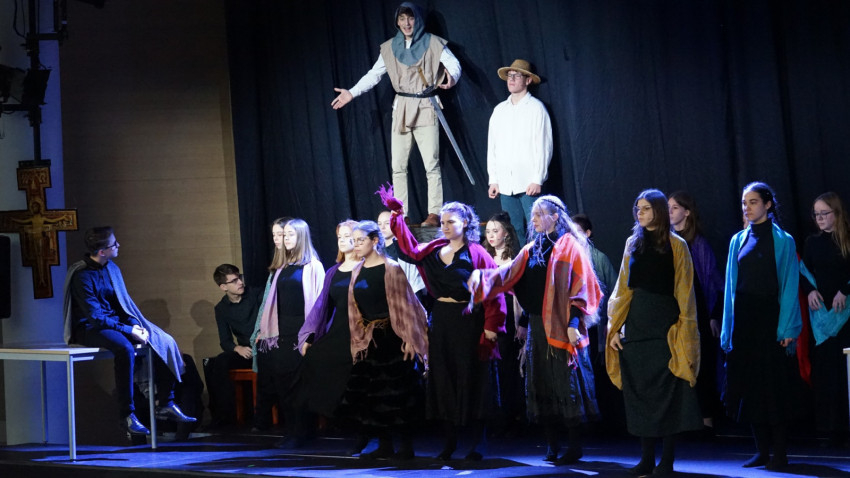 Átélhették ezt azok is, akik az elmúlt hét folyamán részesei voltak a Szent Angéla Ferences Általános Iskola és Gimnázium aulájában a gimnazisták által alkotott színjátszó kör játékának. A diákok és tanáraik nagy fába vágták a fejszéjüket: az eddigi évek prózai darabjai után, közkívánatra, egy musicalt adtak elő, Cervantes Don Quijotéjét.