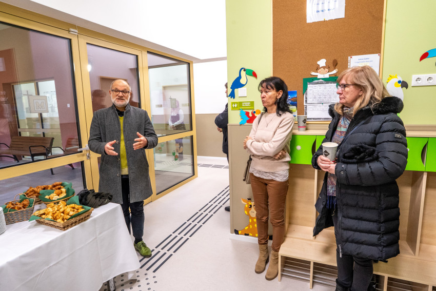 Az átadóünnepség részeként Mátis Barna, az épület tervezője bemutatta a bölcsődét a megjelenteknek.