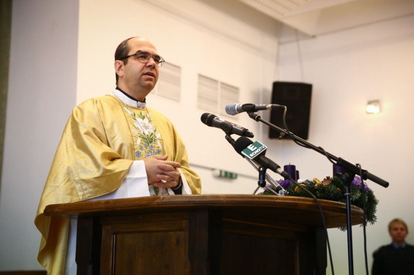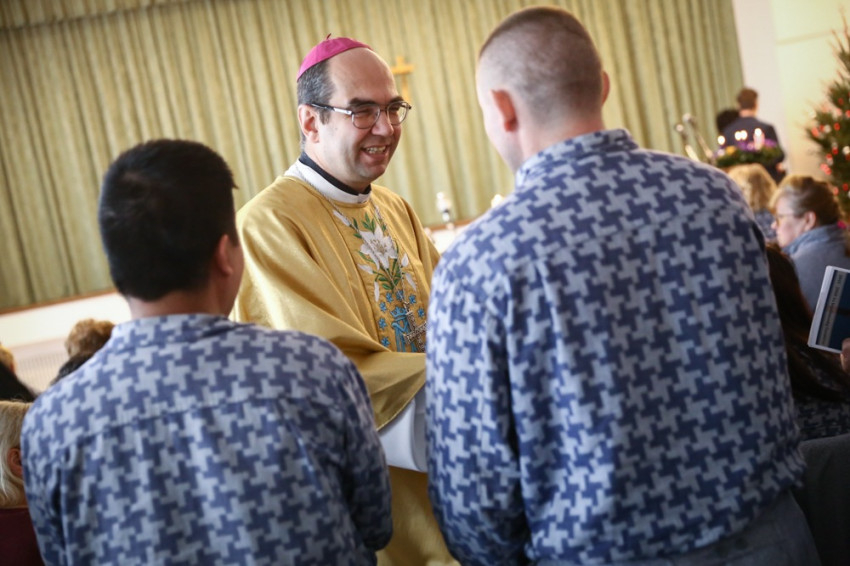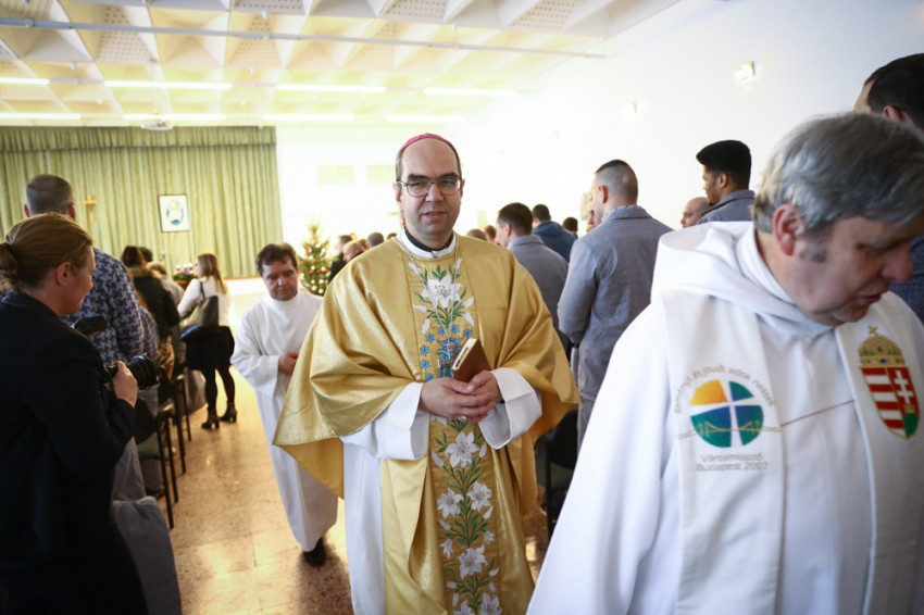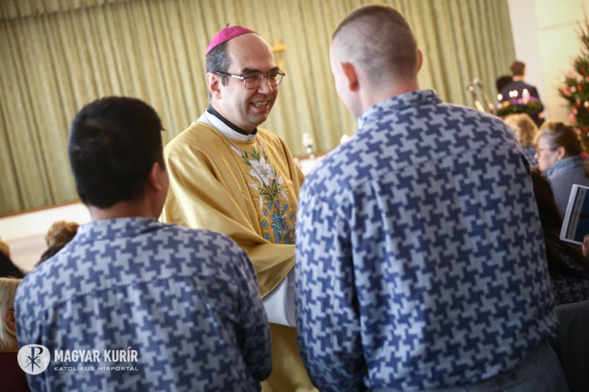 Székely János püspök a szentmise elején köszöntötte a börtön vezetőit és a jelen lévő börtönlelkészeket, köztük a szentmisén koncelebráló Kemenes Gábort és az állandó diakonátusra készülő Tóth Lászlót. Ezt követően személyes hangon szólította meg a fogvatartottakat. „Nehéz börtönben ünnepelni” – állapította meg, majd felidézte egy férfi vallomását, aki a második világháború idején hadifogságban élte meg a karácsonyt. A fogság legnehezebb napja volt ez a rabok számára, este fojtogató csend ült a barakkra egészen addig, amíg egy társuk behozott két kis fenyőgallyat, keresztet formált belőlük, beletűzte egy félbevágott krumpliba, majd imádságra buzdította a többieket: „Ne szomorkodjunk, értünk is megszületett Krisztus, a megváltó!” Azóta egy karácsony sem volt ehhez fogható, amikor díszek és ajándékok nélkül, de Krisztussal voltak együtt – vallotta sok évtized múltán az egykori fogoly. Székely János reményre buzdította a fogvatartottakat: „Krisztus számára nem jelentenek akadályt a börtönfalak, Ő azért jött, hogy mindenkit felemeljen, hogy az életünk teljes legyen.”