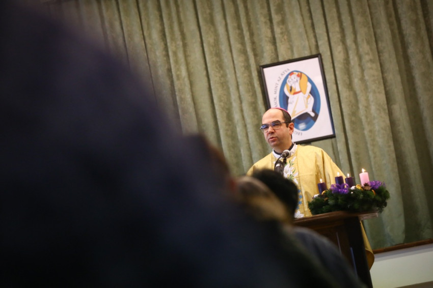 Egy történettel érzékeltette, milyen is az, amikor más fényben tekintünk önmagunkra. Egy rossz tanuló, hanyag, rendetlen fiú, akire nem hatott már a szülői szó, egyszer talált otthon egy pecsétgyűrűt. Édesapja elmesélte neki a címerrel díszített gyűrű történetét, és kiderült ebből, hogy ők egy híres nemesi családhoz tartoznak, de a kommunista rendszerben erről nem szabad beszélni. A fiú pár nap alatt teljesen megváltozott, rádöbbent, hogy egy nagyhírű család gyermekeként ehhez méltóan kell viselkednie. „Ha tudnánk Isten fényében látni magunkat, máshogy telne az életünk!” – figyelmeztetett a szentmise szónoka, majd személyes vallomással folytatta: amikor reggel felnéz ablakából az égre, a reggeli fényben elárasztja az öröm, hogy a teremtő Isten szereti, megváltotta. Ez maga a karácsony: „Isten szeretetének fénye beragyog az életünkbe.”