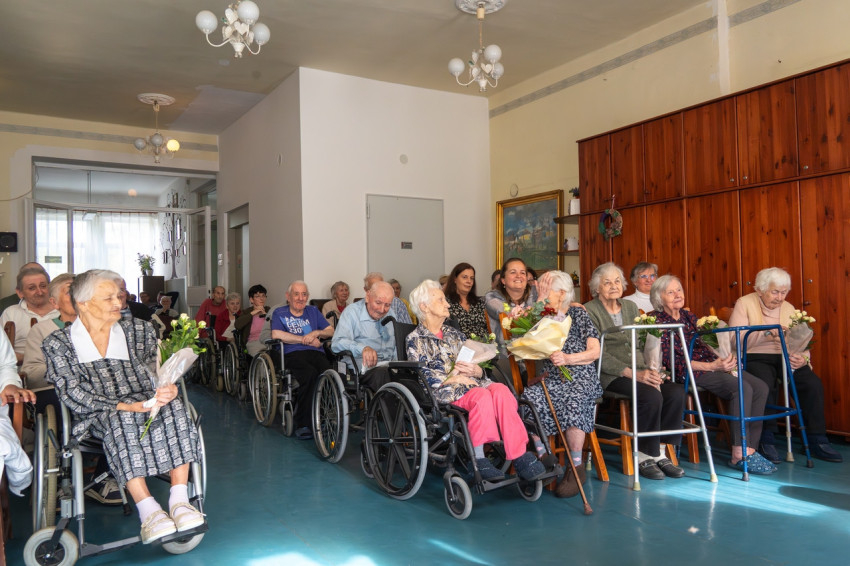A szentmisét követően az intézményben dolgozó indiai nővérek műsora után megnyitották a lakók alkotásaiból készült tárlatot, majd köszöntötték az otthon 90 évnél is idősebb lakóit, köztük a 103 éves Gálos Józsefnét is.