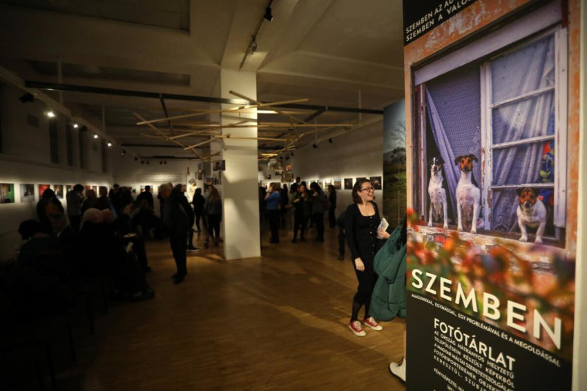 Az április 8-ig látogatható Szemben című fotótárlat a Jelenlét megtartó és építő erejét sajátos mércével méri, a felzárkózás hosszú útján tett aprónak tűnő lépéseket, emberi értékeket, erőfeszítéseket teszi láthatóvá.