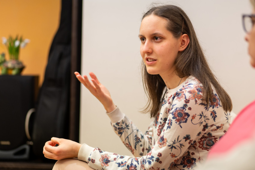 Mercédesz egy hónappal ezelőtt költözött be. A kollégiumot a programokon keresztül már korábban megismerte. Lelkipásztori munkatárs szakon tanul, éppen a szakdolgozatát írja.