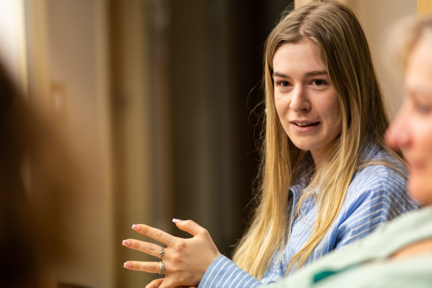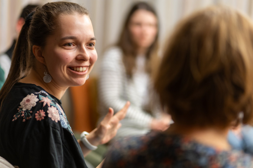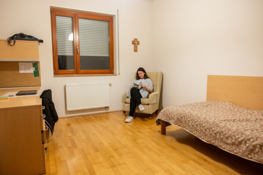 Dóra hittan–magyar szakos hallgató a Pázmányon. Egy albérletben töltött év után került be a kollégiumba. „Olyan helyet kerestem, ahol van egyházi közösség. Itt megfogott a családiasság, és az, hogy aktív a hitélet, és lehetőség van a fejlődésre ezen a téren.”