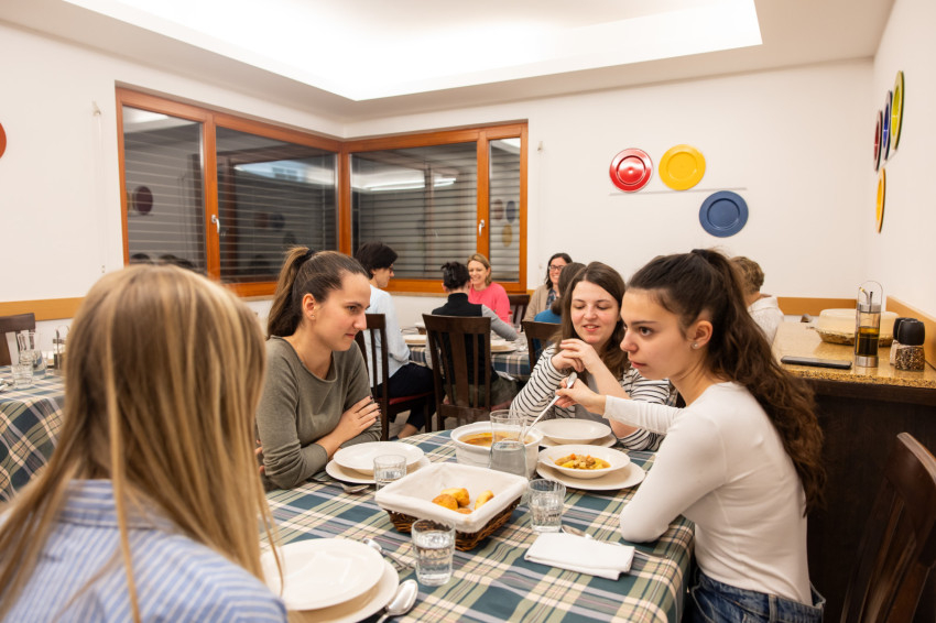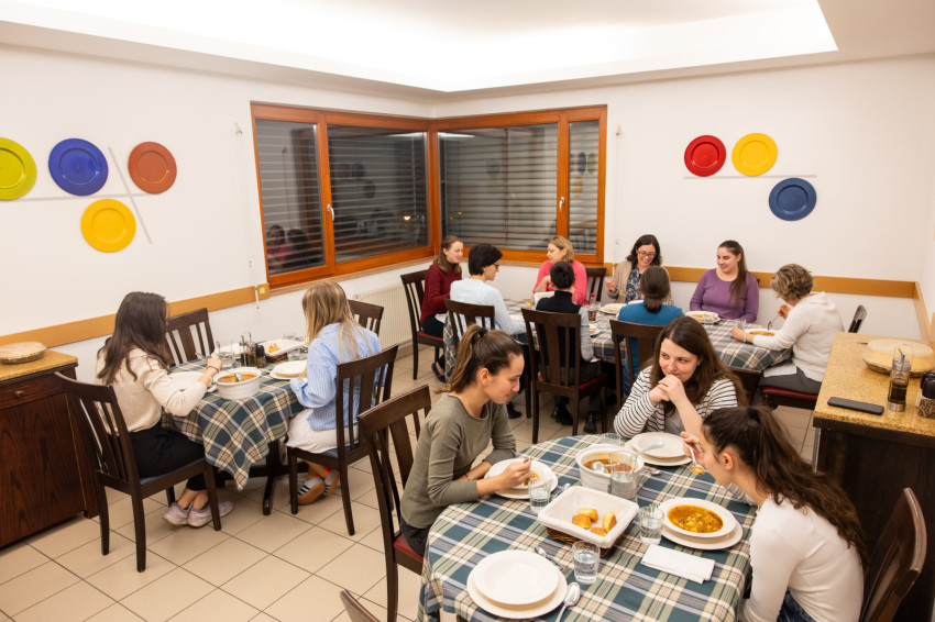 A kollégiumban olyanok a körülmények, mint egy szerető családban. Kényelmes itt élni: mindenkinek saját fürdőszobás szobája van, biztosítják a reggelit és a vacsorát is. Az utóbbi közös étkezés, ilyenkor együtt vannak és beszélgetnek a kollégisták és a numeráriák, elmondják, kivel mi történt aznap. A programok egyébként fakultatívak, mindenkire rá van bízva, mire szán időt. Hetente tartanak klubszerű együttléteket, van előadás, társasozás, filmnézés, adott egy kínálat, de a szervezők szívesen fogadják a lányok érdeklődése, ötletei szerinti programokat is. Anna azt mondja, szerette, hogy szóba kerülhettek az aktualitások is, és hogy nem volt tabutéma, jókat lehetett vitatkozni, és sokat tanulhattak egymástól.