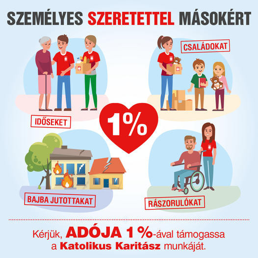 A Katolikus Karitász kéri, hogy ajánlja fel személyi jövedelemadója 1%-át a Karitászt Támogató Alapítvány javára.