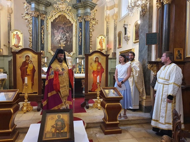 Vasárnap a Fő utcai görögkatolikus templomban folytatódott a program. Ezen a napon Kocsis Fülöp érsek is tiszteletét tette a Szent Flórián-templomban. Fülöp atya kezdetektől fogva figyelemmel kíséri a kurzus „életét”, ezért is volt öröm számunkra a jelenléte. Ezúton is köszönjük neki az utrenye végzését, valamint a Szent Liturgián elmondott homíliát.
