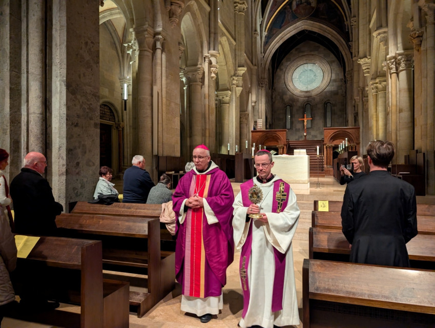 A főapát különösen is erős jelnek nevezte, hogy az ereklye Kárpátaljára, egy olyan földre megy, ahol az elmúlt években a béke törékennyé vált. Emlékeztetett, hogy Oroszország négy éve támadta meg Ukrajnát. Azóta tart a háború, élnek a családok félelemben és gyászban a veszélyben lévő, vagy elhunyt szerettük miatt.