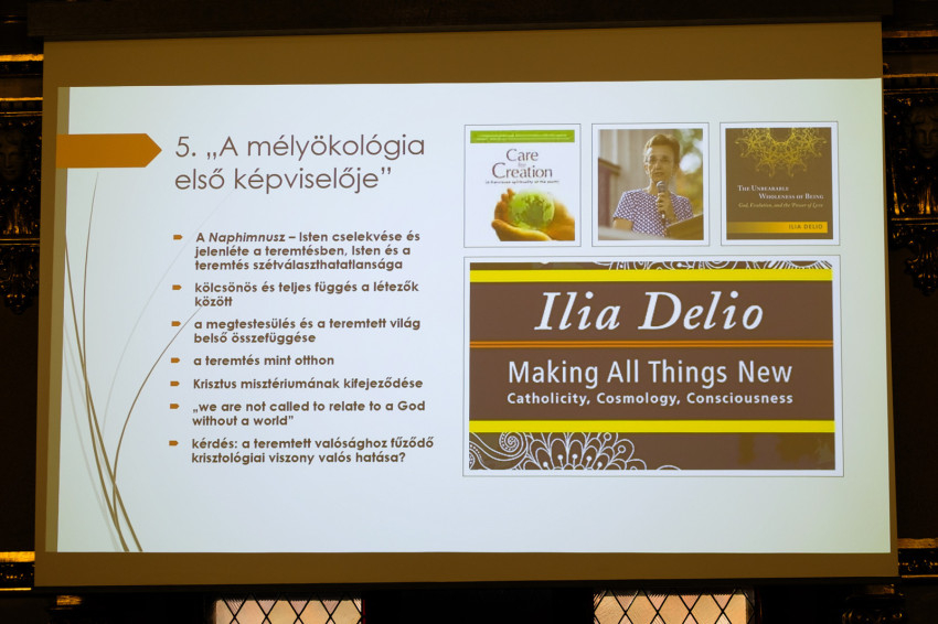 Az előadó megemlítette Ilia Delio ferences szerzetes nevét, aki 1999-ben először tett kísérletet arra, hogy a Naphimnusz kommentálása alapján kidolgozzon egy keresztény ökológiai programot. Nála a Naphimnusz jelentősége a teológiában megkérdőjelezhetetlen, sőt óriási. Delio leszögezi: