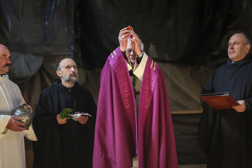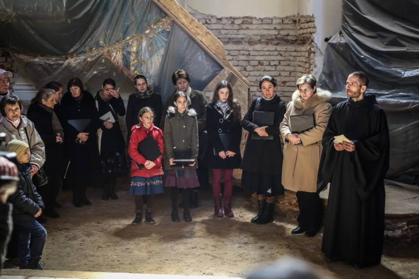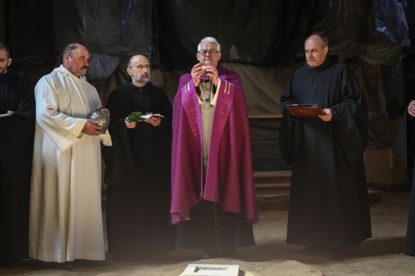 „Urunk, Istenünk, hallgasd meg könyörgésünket, és engedd, hogy sértetlenül megmaradjon ez a szent hely” – imádkozta a sírt szenteltvízzel meghintő Spányi Antal püspök. Felmutatta a közösségnek a vértanú ereklyéjét tartalmazó tokot, és elhelyezte a sírban, melyre majd az oltár épül.