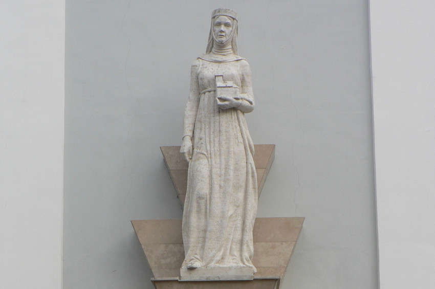 Szent Hedvig, Nagy Lajos király leánya 1374 körül született Magyarországon, később lengyel királynő lett. Szívén viselte a betegek, árvák, szegények, elesettek sorsát, kórházakat látogatott, betegeket ápolt, sokat tett a parasztság nyomorának enyhítéséért és népe kereszténységben való megmaradásáért. II. János Pál pápa 1997-ben avatta szentté. A Dunakanyar védőszentjének is tekintik; szobra a váci Fehérek temploma mellett áll.