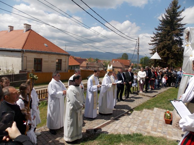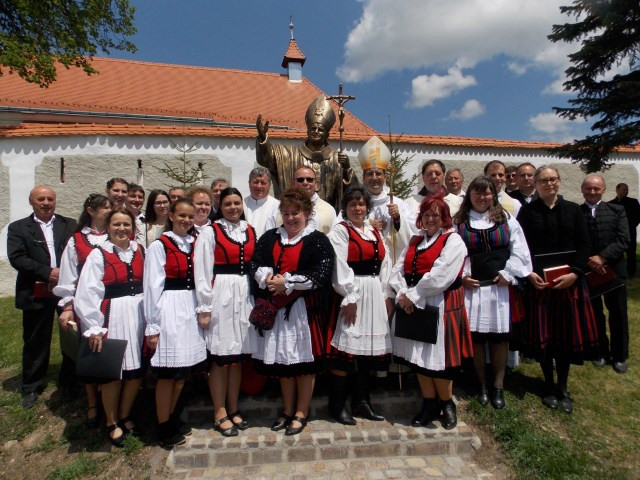 „Amikor nem találtunk Szent Miklós-szobrot, Rózsa László váci egyházmegyés diakónus felajánlotta, hogy adományoz egy Szent II. János Pál pápa-szobrot. Ezt gondviselésnek vettem. Most itt van, megállhatunk előtte. Szent II. János Pál pápa ember nagyságú szobra legyen jel a templomuk előtt elhaladóknak – tette hozzá a plébános.