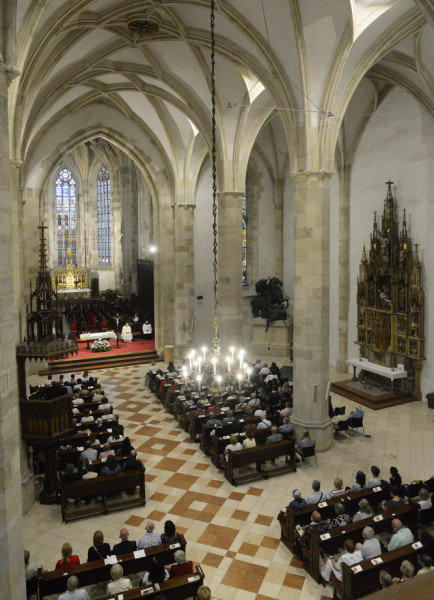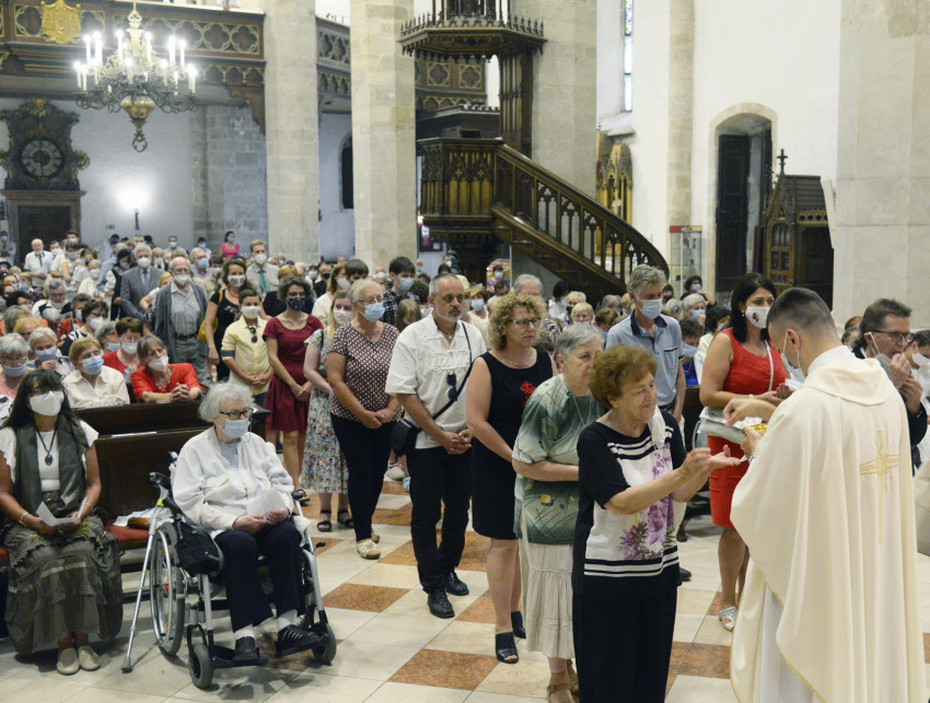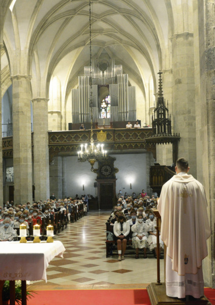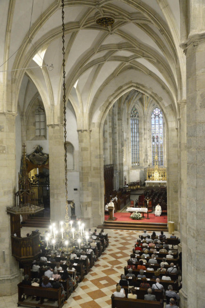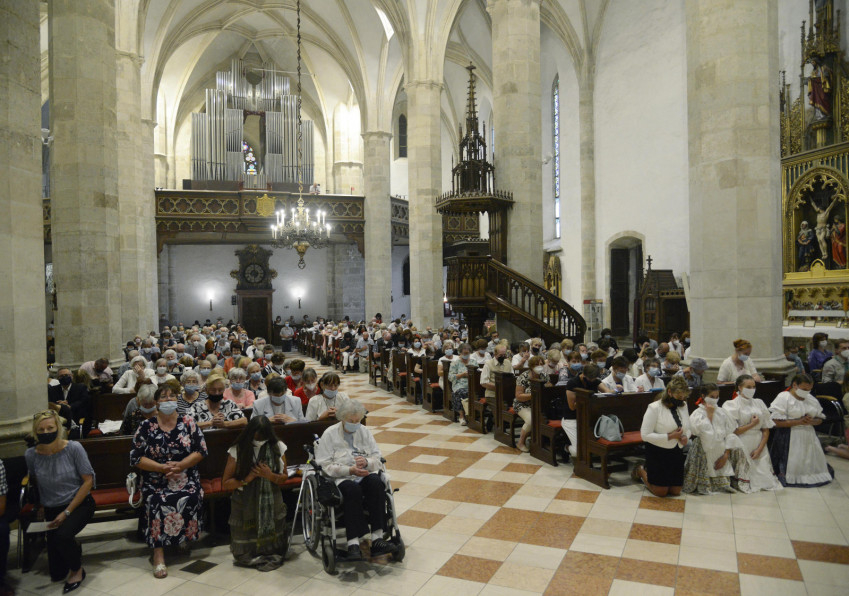 Az esti szentmisére szép számban összejöttek a közelebbről s távolabbról érkező zarándokok Pozsony 15. századi, gótikus székesegyházában.
