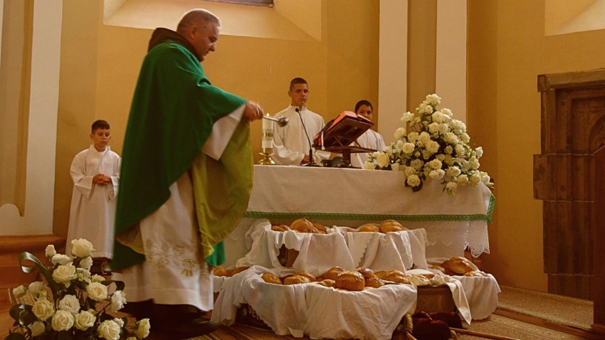 A szentmise végén az oltár elé kihelyezett kenyereket a ferences szerzetes megáldotta, majd a hívek a templomból kilépve családonként egy-egy kenyérrel térhettek haza otthonaikba.