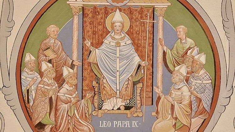– Szent IX. Leó pápa befolyásos elzászi arisztokrata család, Egisheim és Dagsburg grófjainak családjában látta meg a napvilágot 1002-ben. Már ötéves korától papi pályára szánták, és ennek megfelelő nevelésben részesült. Tanulmányaiban kiváló előmenetelt tanúsított, és aránylag fiatalon Toul püspöke lett. Ilyen minőségében nagy részt vállalt az Egyház akkor folyamatban lévő reformtörekvéseiben. E területen nagy tekintélyt szerzett, és jó kapcsolatba került az 1046-ban megválasztott Salier III. Henrik császárral. Ezek az előzmények ugyancsak 1046-ban arra predesztinálták, hogy az Apostoli Szentszéknél folytassa további szolgálatát 1054-ben bekövetkezett haláláig. Szerény életvitele, fontos és népszerű intézkedései az Egyház történetének jelentős uralkodói közé emelik. A nemzetközi politikában fő törekvése az európai béke előmozdítása volt, és e területen személyesen is igyekezett beavatkozni III. Henrik császár és I. András magyar király ellentétébe, ezért személyesen is felkereste a szemben álló feleket Pozsony mellett. Béketörekvéseinek néhány év múlva meg is lett az eredménye. Sajnos másik, világtörténelmi léptékű béketörekvése – kiegyezés a konstantinápolyi patriarkátussal – sikertelen maradt, holott két legkiválóbb diplomatáját, Umberto di Silva Candida bíborost és Friedrich von Wigerich-Lothringent, a későbbi IX. István pápát küldte el tárgyalni. Sajnos e két kiváló férfiú igyekezete meghiúsult a pátriárka merev ellenállása miatt (1054. június 16-án), bár e szomorú fejlemény hírétől a Gondviselés megkímélte, 1054. április 19-én követte 151 pápaelődjét az örökkévalóságba.