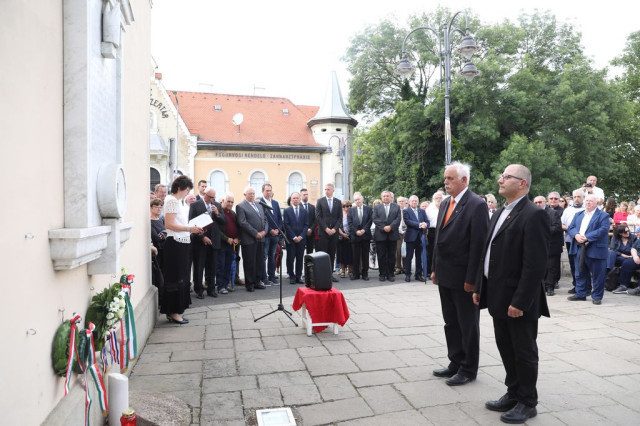 A beszédeket koszorúzás követte. Közreműködött a Szombathelyi Fúvószenekar.