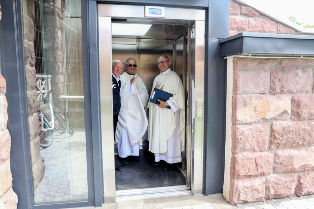 Vasárnap délelőtt tíz órakor szentmise keretében felavatták és megáldották a szalézi templom megújult lépcsőjét, illetve az újonnan elkészült liftet, amelynek segítségével végre meg tudták oldani a mozgáskorlátozottak, babakocsisok és idősek bejutását is a templomba.