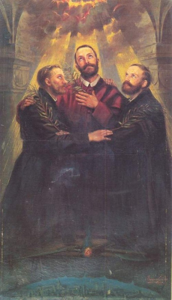 A három vértanú boldoggáavatási eljárását még 1628-ban elindította Pázmány Péter bíboros, esztergomi érsek. Azonban sokáig kellett várni az eredményre: 1905. január 15-én Szent X. Piusz pápa népes magyar küldöttség jelenlétében engedélyezte nyilvános tiszteletüket. II. János Pál pápa szlovákiai látogatása alkalmával, 1995. július 2-án avatta szentté a vértanúkat. Az esztergomi bazilikában tiszteletükre szentelt oltárban őrzik ereklyéiket.