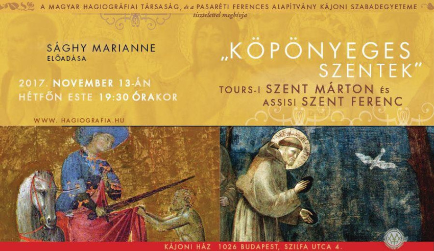 Nem csupán esetleges jelző volt Sághy Marianne előadása címében a „köpönyeges” szó: valóban a köpeny, köpönyeg köré épült az előadás, amelyet a nemrég alakult Magyar Hagiográfiai Társaság és a Pasaréti Ferences Alapítvány Kájoni Szabadegyeteme szervezett.