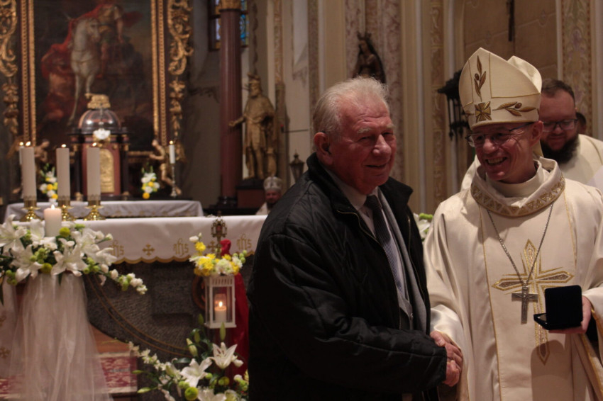 Köszönetet mondott Majnek Antal nyugalmazott megyéspüspöknek szolgálatáért, támogatásáért. Beszéde során hangsúlyozta, hogy a püspök és a székesegyház védőszentje életútjában sok a hasonlóság. Mindkettőjüknek nehéz volt igent mondani a püspöki szolgálatra, de végül mindketten elvállalták ezt a szent küdetést. Emlékeztetett arra, „amikor Szent Márton haldoklott, és testvérei bánkódtak, hogy el fogja hagyni őket, Márton így imádkozott Istenhez: »Uram, ha népednek még szüksége van rám, nem vonakodom a munkától.« Hasonlóképpen, miután Ferenc pápa elfogadta Antal püspök (főpásztori) lemondását, ő örömmel maradt, és ma is szolgál az egyházmegyénkben, támogat minket.”