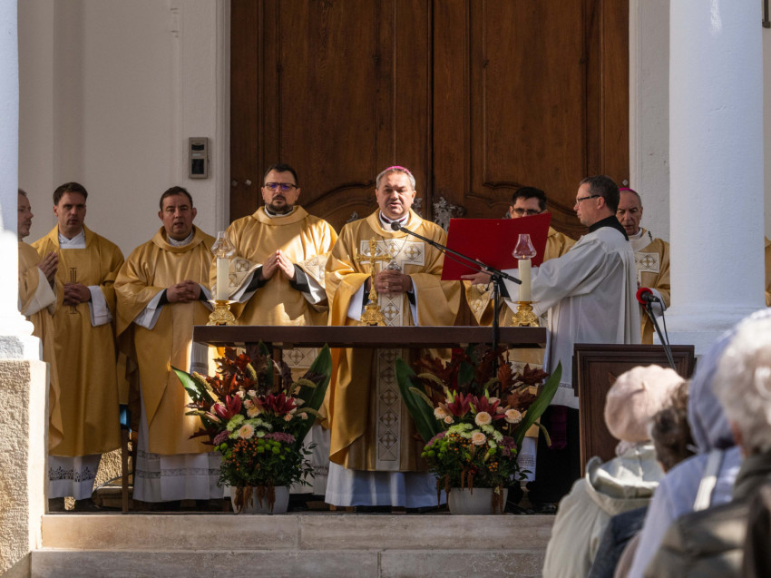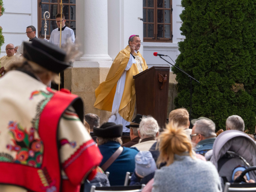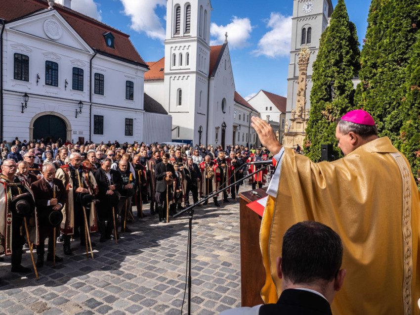 Szeptember 28-án, vasárnap délelőtt a veszprémi Várhegyen, az érseki palota előtti Szentháromság téren a Felföldi László pécsi megyéspüspök mutatott be ünnepi szentmisét, amelyet megelőzően Udvardy György érsek köszöntötte az egybegyűlteket, külön üdvözölve azokat a zarándokokat, akik reggel Litérről, Bódi Mária Magdolna sírjától zarándokoltak el Veszprémbe. Köszöntötte a liturgiára érkező pásztorokat is, akik nemcsak hagyományőrzők, hanem akad köztük, akik valóban ezt a mesterséget űzi. „Ünnepelni jöttünk össze azt, akik vagyunk. Így ajánljuk Szent Mihály oltalmába egyházmegyénket, és örömmel tesszük ezt” – hangsúlyozta a veszprémi érsek.