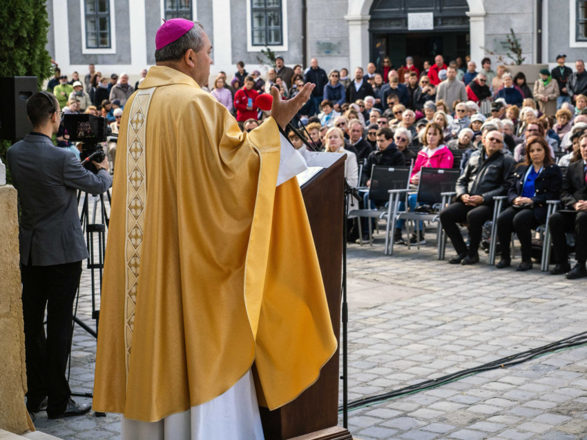 Felföldi László püspök a hívekkel megosztotta: a kedvenc szentje Szent Mihály, aki harcosként üzen számunkra. „Isten személyes ajándékot készített nekünk, és bármilyen szinten is van a hitünk, a bűnbánatunk segíthet ezt az ajándékot magunkhoz venni” – biztatott a szentmise kezdetén.