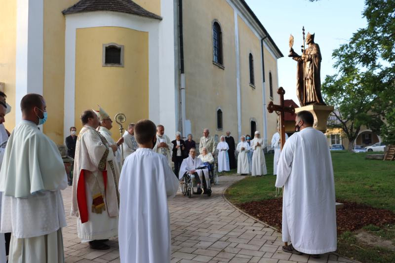 A zsámbéki szobor megáldását ünnepi vesperás és szentmise után tartották. Spányi Antal székesfehérvári megyéspüspök celebrálta a szentmisét a rend tagjaival, majd megáldotta a szobrot, amelyet a zsámbéki Keresztelő Szent János-plébániatemplom előtti tér jobb oldalán helyeztek el.
