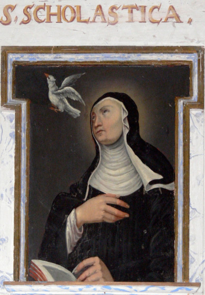 Skolasztika az umbriai Nursiában (ma Norcia) született 480 körül. Fivérével együtt Istennek szentelte életét, és követte testvérét Montecassinóba, ahol 547 körül halt meg. Egy Nápolyban talált, márványba vésett naptár szerint Skolasztikát február 10-én temették el. Rómában a 12. század óta tartják ünnepét ezen a napon.