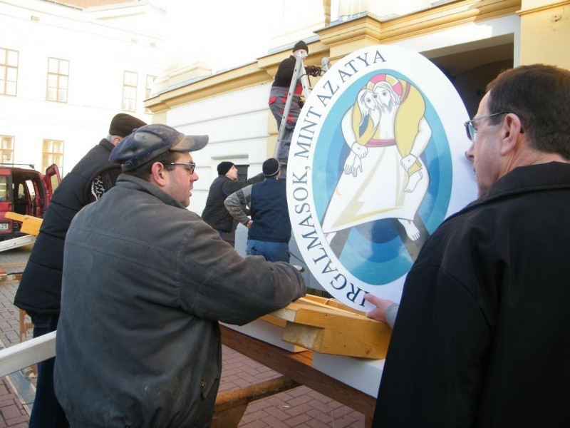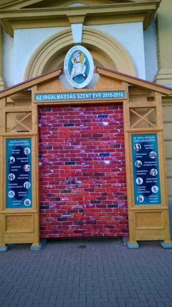 A nagytemplom főbejáratánál elhelyezett szentévi kaput december 5-én, szombaton állították fel. A kivitelezési munkákat három szakember végezte. Az irgalmasság testi és lelki szimbólumait feliratozva, gyönyörű színharmóniában álmodta meg Füzi József vállalkozó; a fából készült díszkapu igazi asztalos remekmű, Szabó István asztalosmester munkája; Füzi Sándor nevéhez az anyagbeszerzés, a technikai kivitelezés kötődik.