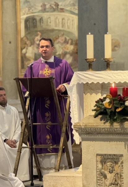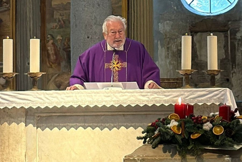 A szentmisében az aranymisés jubilánst Törő András, a Pápai Magyar Egyházi Intézet rektora köszöntötte.