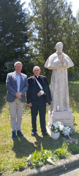 Ezt követően az ünneplők az otthon kertjében megkoszorúzták a bíboros szobrát, melyet az otthon egykori Mindszenty-díjas lakója, Pákh Tibor emeltetett 2016-ban, a bíboros kiszabadulásának 60. évfordulója alkalmából.