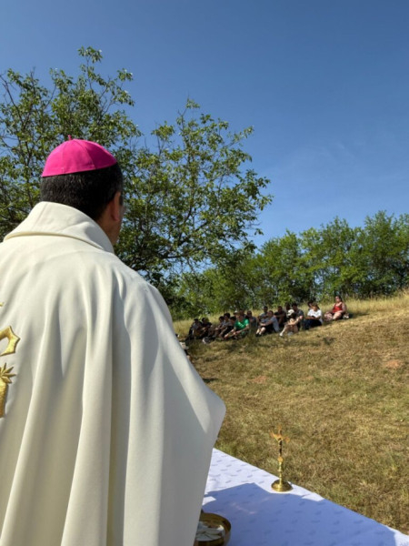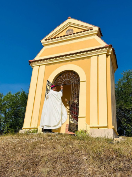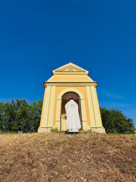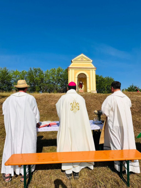 Június 27-én, pénteken reggel Kerekes László segédpüspök mutatott be szentmisét a rózsamáli szőlőskert kápolnájánál.