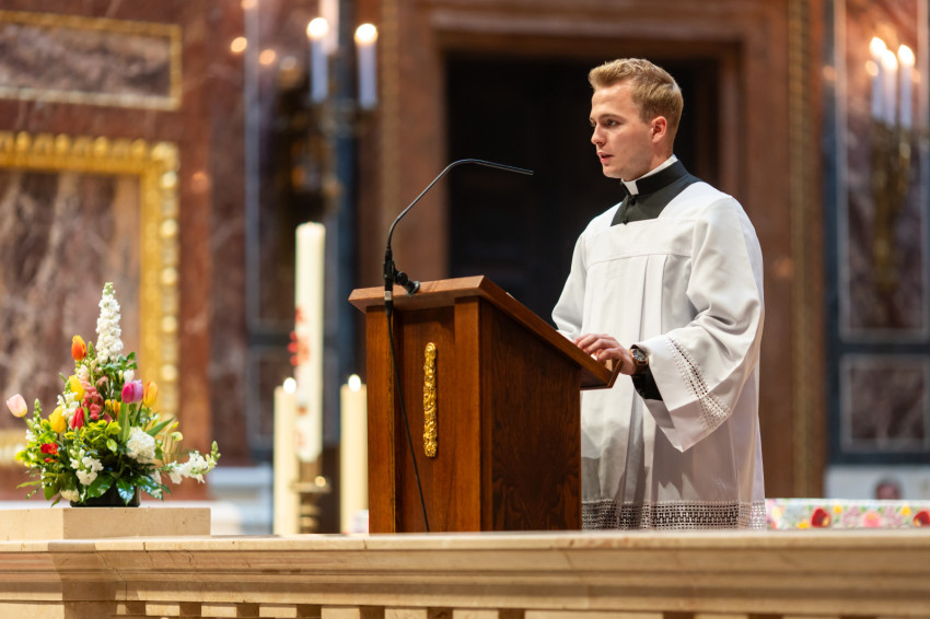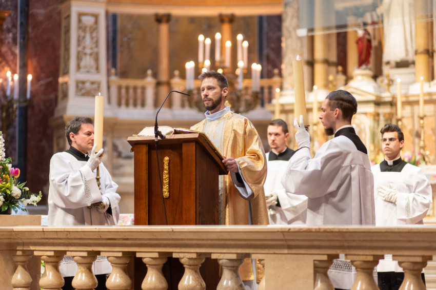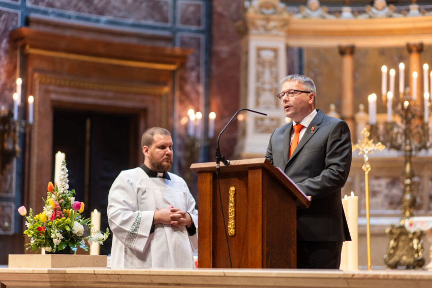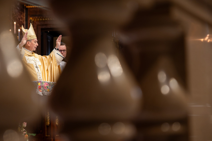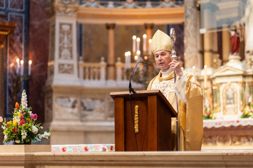 „Jézus Krisztus vízen járásának a történetét hallottuk. Ez egy húsvéti történet, mely a húsvéti hit fényében érthető meg leginkább. Bemutatja Jézus Krisztus hatalmát, de a szándékát is” – kezdte szentbeszédét Udvardy György veszprémi érsek. Az evangélista megjegyzi, hogy a leírt eseményre a kenyérszaporítás után került sor, ez pedig az Eucharisztiára is utal. Az evangéliumból (Jn 6,16–21) azt is megtudtuk, hogy úgy közelít Jézus a tanítványokhoz, ahogyan nem számítottak rá. A Megváltó így köszönti őket: „Én vagyok”, ami összefügg Istennek azzal a kinyilatkoztatásával, melyet az égő csipkebokornál mondott Mózesnek. A húsvéti feltámadás erejében értjük meg igazán, mi ez az „én vagyok”: Veled vagyok, érted vagyok.