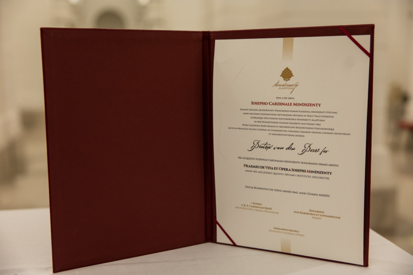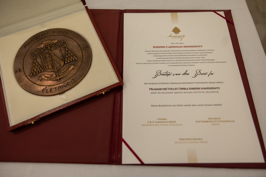 Az Isten Szolgája Mindszenty József bíboros, esztergomi érsek által 1972-ben alapított Kardinal Mindszenty Stiftung és a Magyarországi Mindszenty Alapítvány Erdő Péter bíboros, prímás, esztergom-budapesti érsek jóváhagyásával 2015-ben Mindszenty József-életműdíjat (vándordíjat) alapított. Ezt a kitüntetést egyidejűleg legfeljebb hét hatvanöt év feletti, keresztény vallású személy számára ítélik oda, akik „az egyházi, tudományos és közösségi életben Isten Szolgája Mindszenty József bíboros tiszteletének előmozdítása terén kimagasló érdemeket szereztek, és az életműdíjra személyes életvitelükkel is méltóvá váltak”. A díj a hét személy által élethossziglan birtokolható.