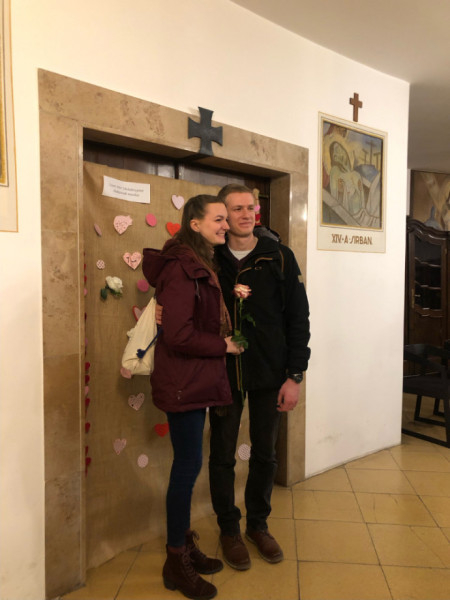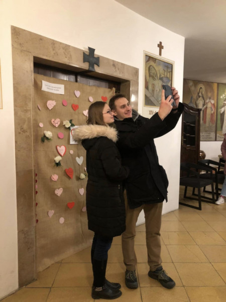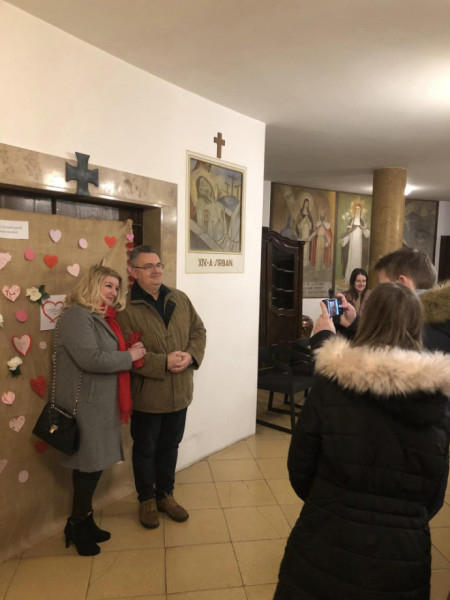 A szentmisét követően a templom kapujában a szentírási igehelyeket tartalmazó cédulákból választhattak maguknak a párok. Az ünnep alkalmából pedig az úgynevezett fotófal előtt lehetett fényképezkedni, melynek díszeit, akárcsak a cédulákat, a diákok készítették.