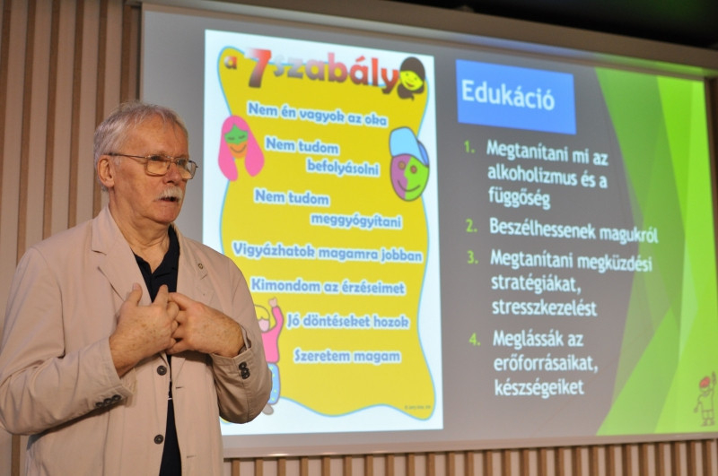„Az alkoholizmus gyermekei nem éreznek, nem bíznak, és nem beszélnek. Felvesznek a családban egy bizonyos szerepet; hős, bűnbak, az elveszett gyerek, vagy a bohóc szerepében kezdenek el működni, csak hogy túléljék a helyzetet.” Az előadó különböző filmjelenetek lejátszásával szemléltette, min mennek keresztül ezek a gyermekek, ugyanakkor elmondta, hogy nemcsak sebekkel, hanem erősségekkel is bírnak az érintettek.