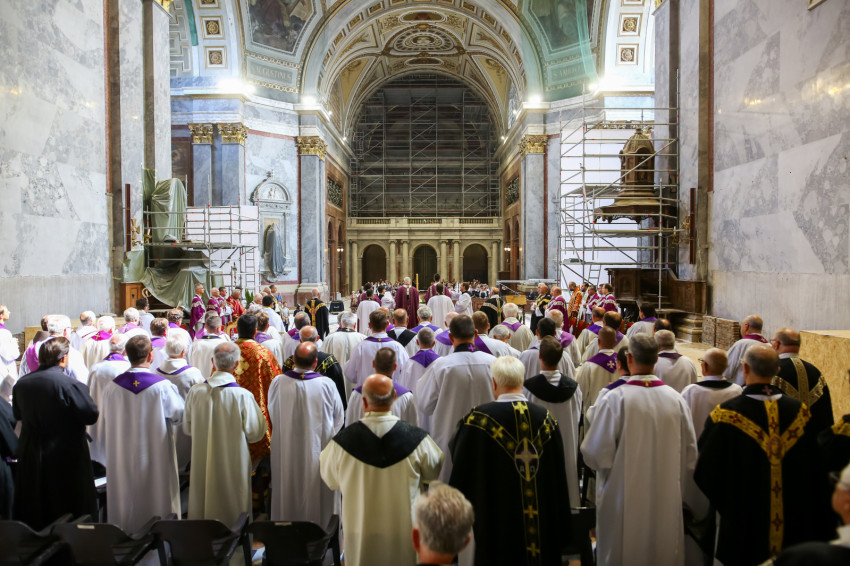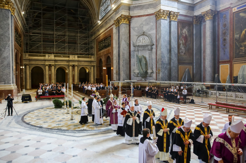 Szentmisét mutatnak be Cserháti Ferenc nyugalmazott esztergom-budapesti segédpüspök lelki üdvéért. Jelen van a Magyar Katolikus Püspöki Konferencia számos tagja, többek között Ternyák Csaba egri érsek, Udvardy György veszprémi érsek, az MKPK alelnöke, Bábel Balázs kalocsa-kecskeméti érsek, Kocsis Fülöp hajdúdorogi érsek-metropolita; Michael Wallace Banach érsek, Magyarország apostoli nunciusa, külhoni főpásztorok, így Német Lászó, a belgrádi főegyházmegye érseke, Schönberger Jenő, a Szatmári Római Katolikus Egyházmegye püspöke, valamint nagy számban paptestvérek.